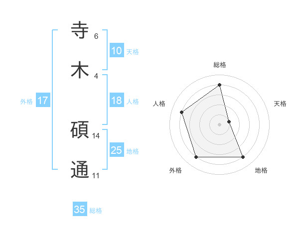 寺木 碩通さんの総格は35画の4点!