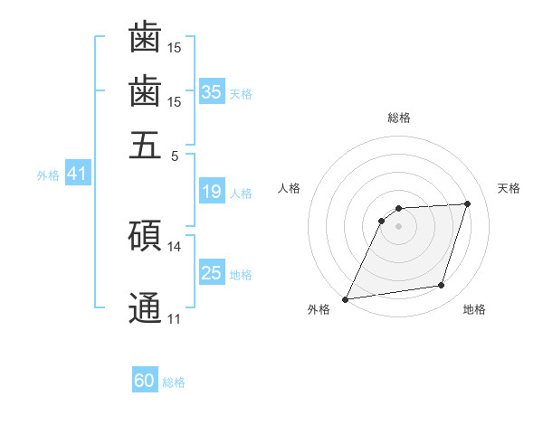 歯歯五 碩通さんの外格は41画の5点!
