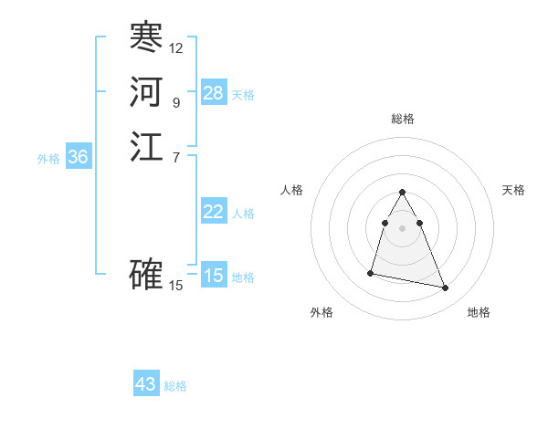 寒河江 確さんの総格は43画の2点!