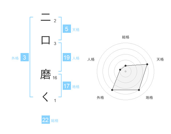 二口 磨くさんの天格は5画の4点!