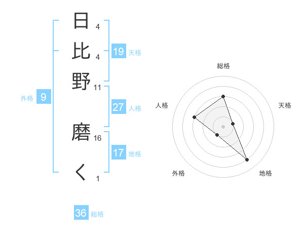 日比野 磨くさんを姓名の画数から五運を鑑定