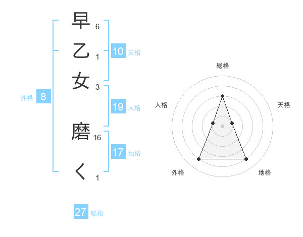 早乙女 磨くさんの総格は27画の3点!