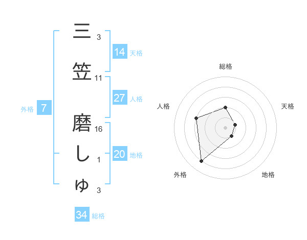 三笠 磨しゅさんを姓名の画数から五運を鑑定