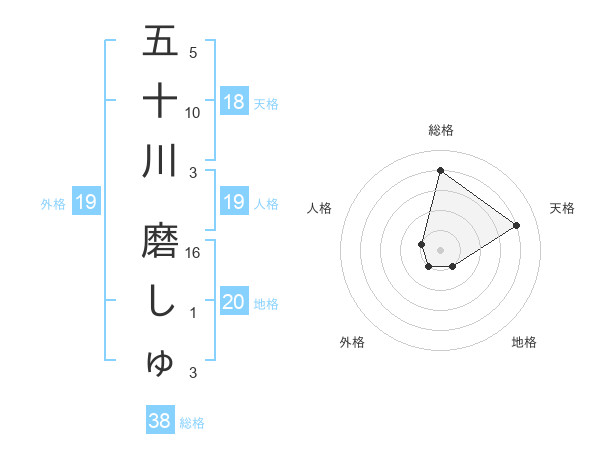 五十川 磨しゅさんの総格は38画の4点!