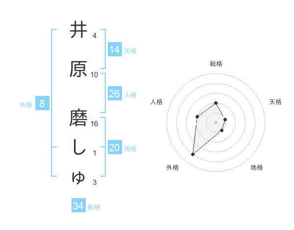 井原 磨しゅさんを姓名の画数から五運を鑑定