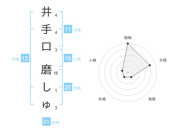 井手口 磨しゅさんを姓名の画数から五運を鑑定