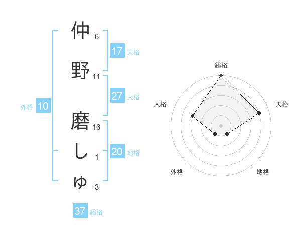 仲野 磨しゅさんを姓名の画数から五運を鑑定