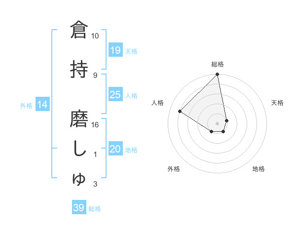 倉持 磨しゅさんを姓名の画数から五運を鑑定
