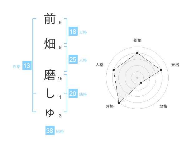 前畑 磨しゅさんを姓名の画数から五運を鑑定