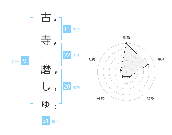 古寺 磨しゅさんの総格は31画の5点!