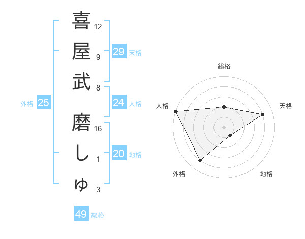 喜屋武 磨しゅさんを姓名の画数から五運を鑑定