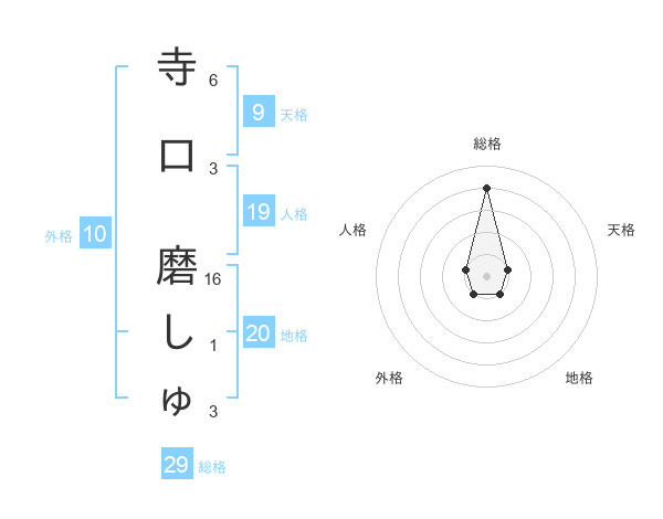 寺口 磨しゅさんの地格は20画の1点!