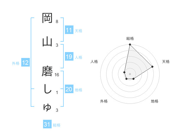 岡山 磨しゅさんの総格は31画の5点!