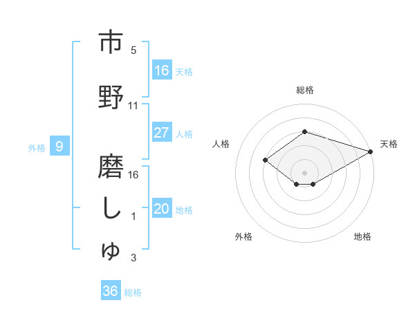 市野 磨しゅさんを姓名の画数から五運を鑑定