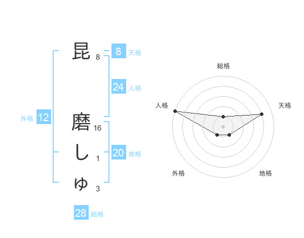 昆 磨しゅさんを姓名の画数から五運を鑑定