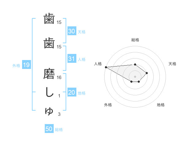 歯歯 磨しゅさんの総格は50画の2点!