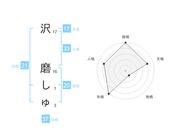 沢 磨しゅさんを姓名の画数から五運を鑑定