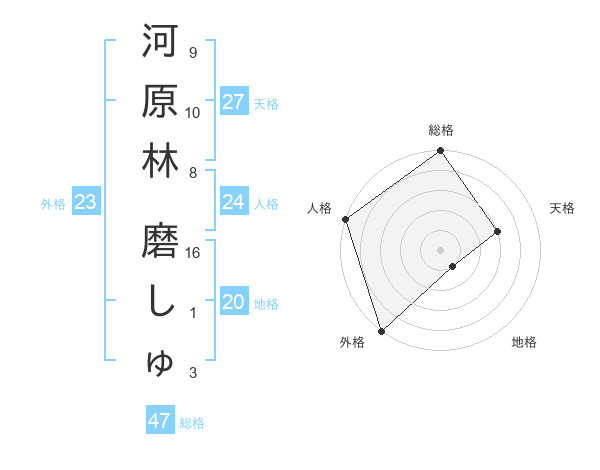 河原林 磨しゅさんの総格は47画の5点!