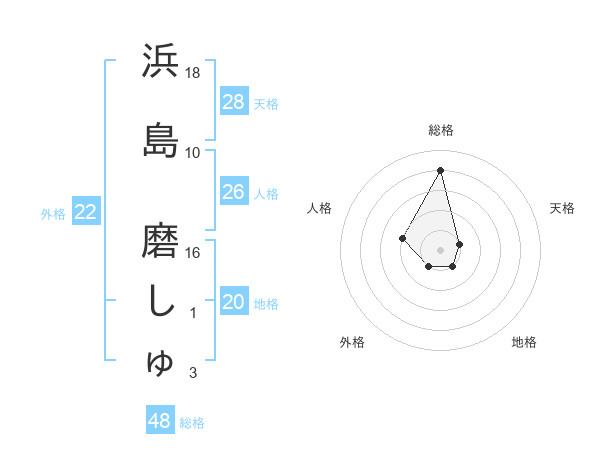 浜島 磨しゅさんを姓名の画数から五運を鑑定