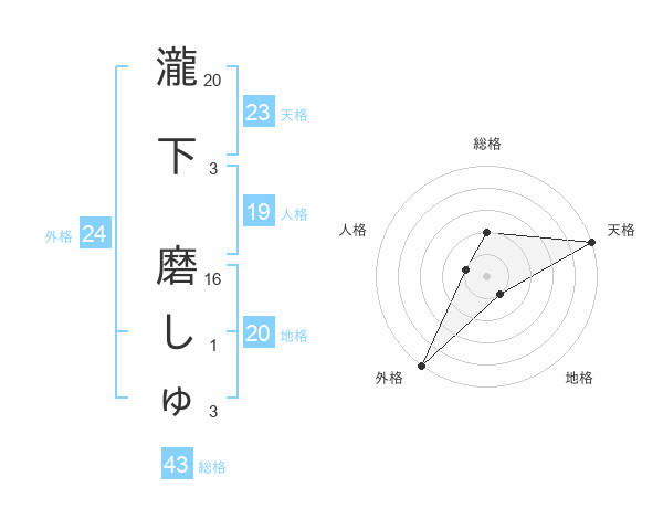 瀧下 磨しゅさんを姓名の画数から五運を鑑定