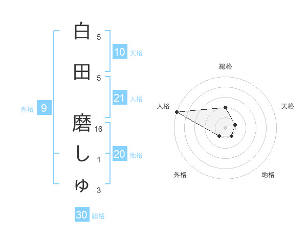 白田 磨しゅさんを姓名の画数から五運を鑑定