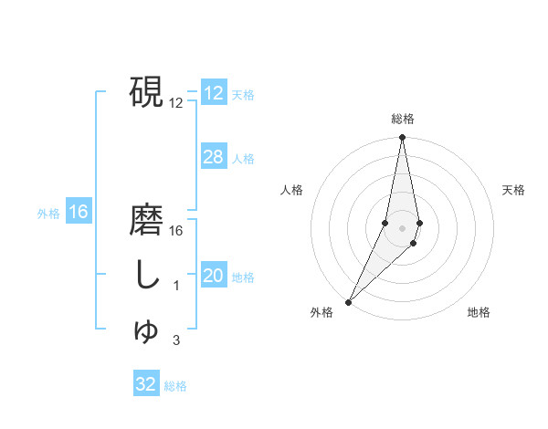 硯 磨しゅさんの地格は20画の1点!