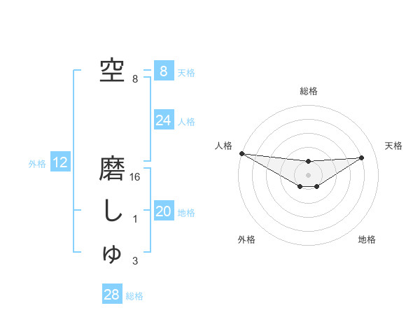 空 磨しゅさんの地格は20画の1点!