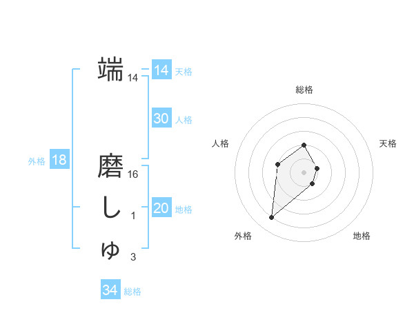 端 磨しゅさんの総格は34画の2点!