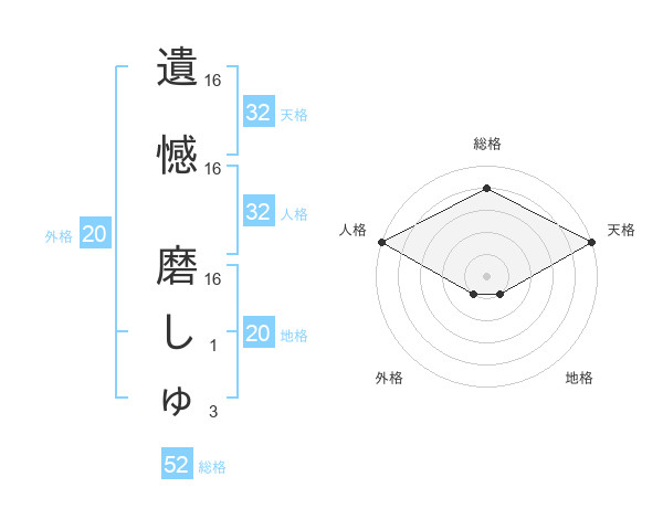 遺憾 磨しゅさんの総格は52画の4点!