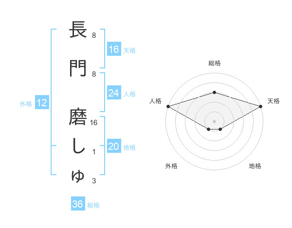 長門 磨しゅさんの地格は20画の1点!
