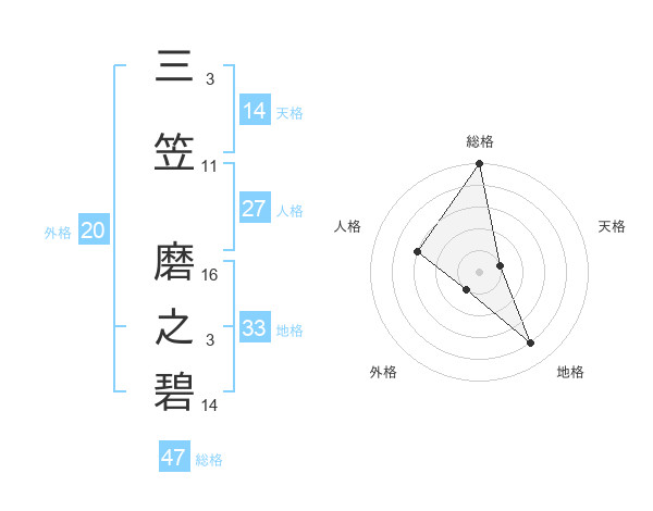 三笠 磨之碧さんを姓名の画数から五運を鑑定