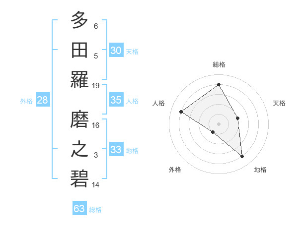 多田羅 磨之碧さんの総格は63画の4点!