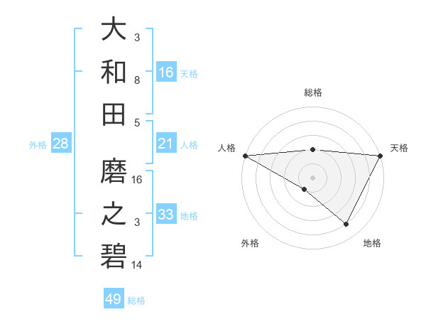 大和田 磨之碧さんを姓名の画数から五運を鑑定