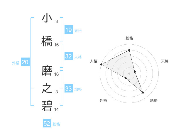小橋 磨之碧さんを姓名の画数から五運を鑑定