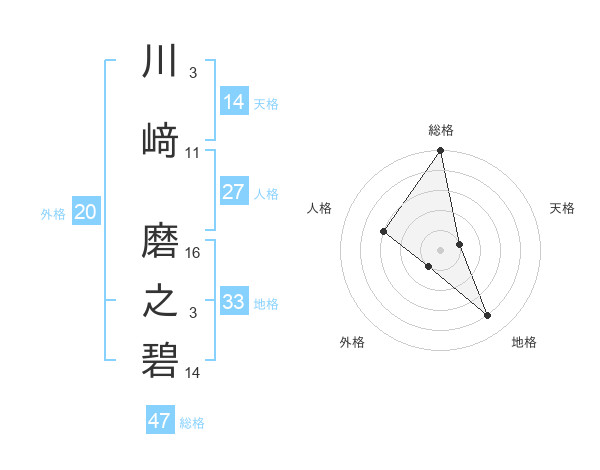 川﨑 磨之碧さんを姓名の画数から五運を鑑定