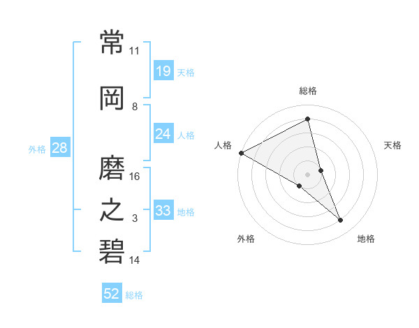 常岡 磨之碧さんの総格は52画の4点!