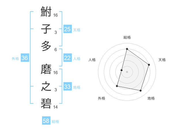 鮒子多 磨之碧さんを姓名の画数から五運を鑑定