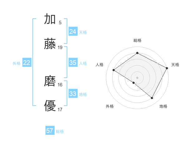 加藤 磨優さんを姓名の画数から五運を鑑定