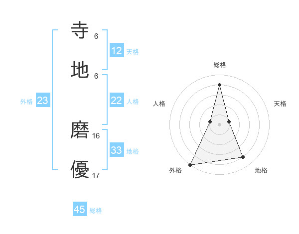 寺地 磨優さんを姓名の画数から五運を鑑定