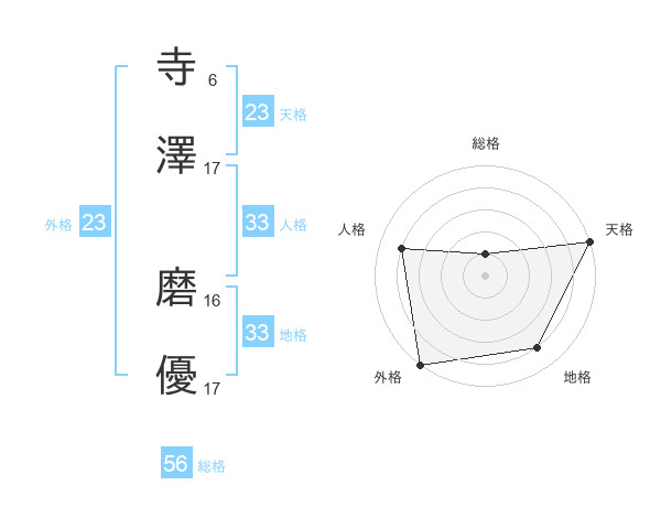 寺澤 磨優さんの天格は23画の5点!