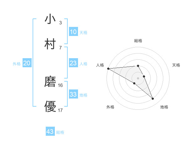 小村 磨優さんの総格は43画の2点!