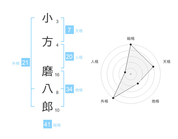 小方 磨八郎さんを姓名の画数から五運を鑑定
