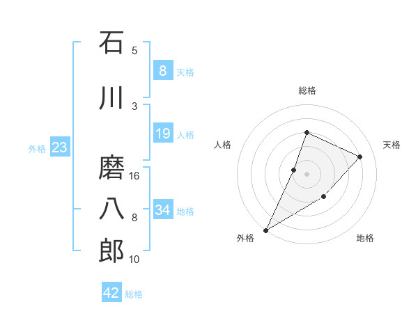 石川 磨八郎さんを姓名の画数から五運を鑑定