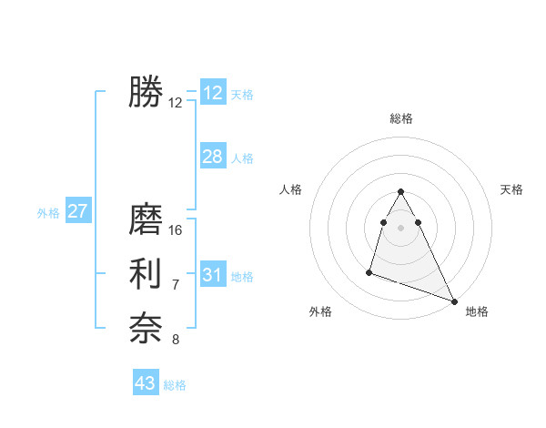 勝 磨利奈さんの天格は12画の1点!
