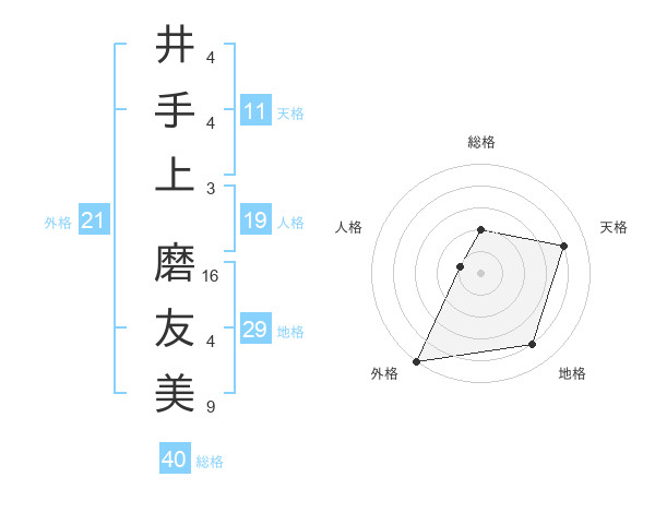 井手上 磨友美さんを姓名の画数から五運を鑑定