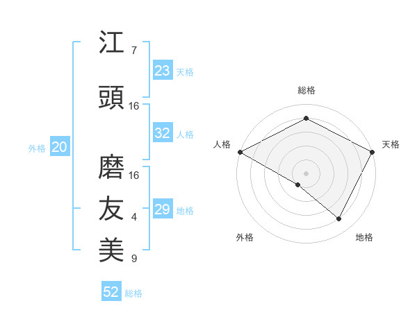 江頭 磨友美さんの総格は52画の4点!