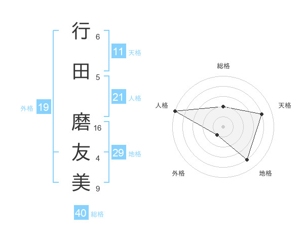 行田 磨友美さんの人格は21画の5点!