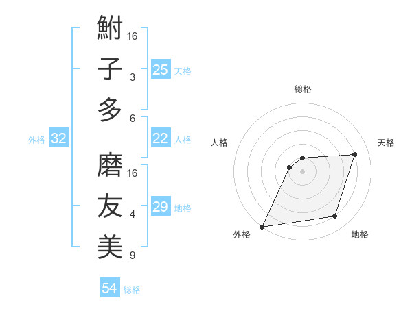 鮒子多 磨友美さんを姓名の画数から五運を鑑定