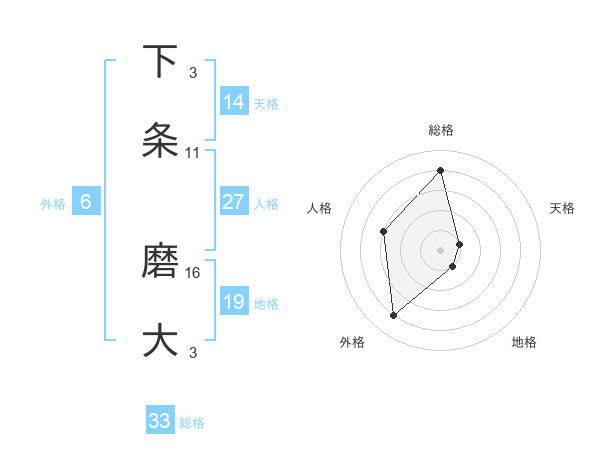 下条 磨大さんの総格は33画の4点!