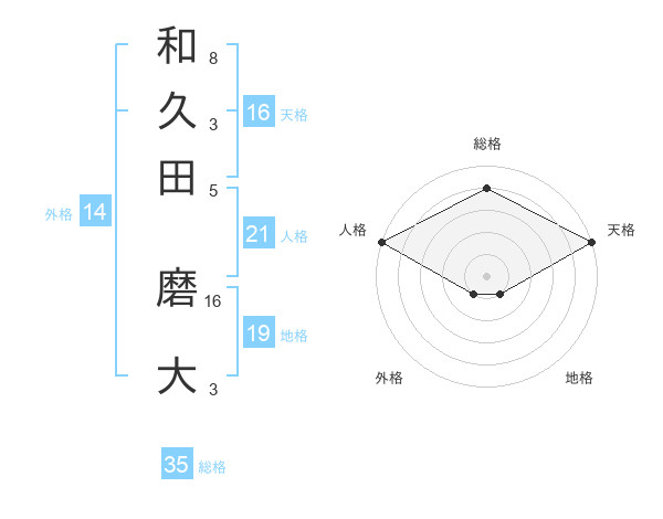 和久田 磨大さんを姓名の画数から五運を鑑定